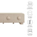 Experience the timeless appeal of the Sonnet Retro Low TV Stand that combines modern design with practical functionality. This 69" TV stand features rounded corners and circular handle pulls that resemble giant buttons, adding a whimsical touch to its sleek aesthetic. Constructed with a durable blend of materials and finished with a wood grain paper laminate, this retro TV stand is both stylish and sturdy. Perfect as a home entertainment center, Sonnet boasts four spacious drawers that provide ample storage for media essentials, gaming consoles, home accessories, and more. Versatile in use, Sonnet can accommodate wall-mounted TVs up to 76 inches, making it an ideal modern media console for your living room, office, or entertainment space. Resting on simple legs with non-marking foot glides, this low profile TV stand with drawers requires assembly. Weight Capacity: 220 lbs.