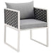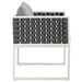 Gather family and friends for pleasant weather and good conversation with the Stance Outdoor Collection for an exceptional al fresco dining experience. Boasting a contemporary modern look, Stance features woven polyester fabric rope seat back and flared powder-coated aluminum frame, waterproof all-weather fabric cushions, and a 90.5" rectangle table with a spray stone glass surface for all your entertaining and casual dining needs. A versatile set designed for long-lasting durability, the Stance Collection can be mixed and matched and effortlessly arranged to fit the spontaneous needs of you and your guests. Chair Weight Capacity: 331 lbs.