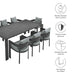 Enliven your alfresco spaces with the Tahoe Aluminum Outdoor Dining Set for 8. This modern 9 piece patio dining set includes a large rectangular dining table and eight chairs, all constructed with well-crafted, durable powder-coated aluminum, dispensing contemporary elegance in your outdoor dining spaces. Each Tahoe Aluminum Patio Chair features an open curved back and is designed with removable, stain-resistant cushions filled with dense foam padding and covered in sunproof, water-resistant fabric. The matching 83-inch patio table complements the chairs with its low-maintenance design, slatted top, and practical umbrella hole with a fitted lid, perfect for year-round functionality. The outdoor dining set for 8 features a table with easy-to-follow assembly instructions and pre-assembled chairs, all equipped with non-marking foot glides to safeguard your deck or patio floor. Weight Capacity - Chair: 300 lbs, Dining Table: 220.5 lbs.