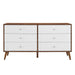 Harness the iconic energy of mid-century style in your master bedroom or guest room with the Transmit 6-Drawer Dresser. Featuring six full-extension white lacquer drawers with chrome metal pulls, Transmit is crafted with solid wood and particleboard, smooth walnut grain laminate, and four wood tapered legs. Keep visual space clean while keeping clothes, accessories, and bedroom essentials neat and organized in the spacious drawers. Assembly required.