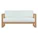 | Featured-0 | Modern outdoor teak sofa Solid teak wood construction Richly textured wood grain Water and UV resistant cushions Machine washable covers Assembly required | |