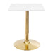 Gather family and friends for good food and conversation around the Verne Dining Table. Bringing modern influence and mid-century inspiration to your dining space, this pedestal table reflects a square shape. Perfect for entertaining or everyday dining, this dining table rests on a polished gold metal pedestal base and features a 24" square tabletop crafted with MDF and an easy-to-clean white finish. A non-marking ring around the base protects flooring. Assembly required.