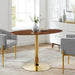 | Featured-0 | Modern Dining Table MDF Tabletop Walnut Veneer Polished Gold Metal Pedestal Base Non-Marking Foot Ring Assembly Required | |