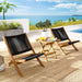 Refresh your outdoor lounging experience with the Vienna 3-Piece Patio Set. This modern outdoor patio set includes a solid teak wood square side table and 2 folding accent lounge chairs, perfect for relaxing moments for two. The naturally weather-resistant teak outdoor end table features a unique square-grid top, while the accent lounge chairs are woven with high-quality nylon rope, creating a contemporary and cohesive look ideal for any patio or garden setting. Conveniently, both the teak side table and the low-profile lounge chairs are foldable, for easy storage and quick setup. Whether used on its own or mixed with other outdoor patio furniture, this outdoor conversation set 3 piece blends effortlessly, complementing a diverse range of outdoor patios. Assembly required.