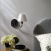 Merging contemporary design with timeless elegance, the Wave Wall Sconce features a playful metal squiggle rod, reminiscent of ocean waves, that swivels with a 120� range, allowing for dynamic lighting adjustments. Topped with a pleated fabric shade, this wall-mounted lamp casts a warm, inviting glow, ideal for a bedside reading light or as an accent in a modern living room. Its hardwired construction ensures a clean look, while the round metal backplate anchors the fixture with a sleek touch. Embrace both form and function with this swivel arm wall lamp, a stylish wall light fixture that makes a statement. This decor wall light is ETL listed and approved and requires a single E12 25W bulb (not included). Assembly required.