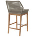 Relax amidst friends and family as you enjoy a meal al fresco with the Wellspring Outdoor Patio Bar Stool. Wellspring brings contemporary modern aesthetics to a backyard, porch, patio, or poolside with it's calming colors, organic wood grain, woven rope detail on the aluminum seat frame, and a crisscross pattern along the backrest. Featuring a premium solid teak wood base with stretchers and non-marking foot pins to protect flooring, this patio bar stool boasts a removable cushion with dense foam padding and ties to ensure a secure seat. It's versatile design makes it a stylish addition indoors too. Assembly required. Weight Capacity: 220 lbs.