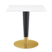 Gather family and friends for good food and conversation around the Zinque Dining Table. Bringing modern influence and mid-century inspiration to your dining space, this pedestal table reflects an organic shape. Perfect for entertaining or everyday dining, this dining table rests on a black and polished gold tapered base and features a square 28" tabletop crafted with MDF and an easy-to-clean white coating. Non-marking ring to protect flooring. Assembly required.