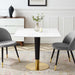 Featured-0 Modern Dining Table MDF Tabletop White Coating Black and Gold Metal Pedestal Base Non-Marking Ring Assembly Required